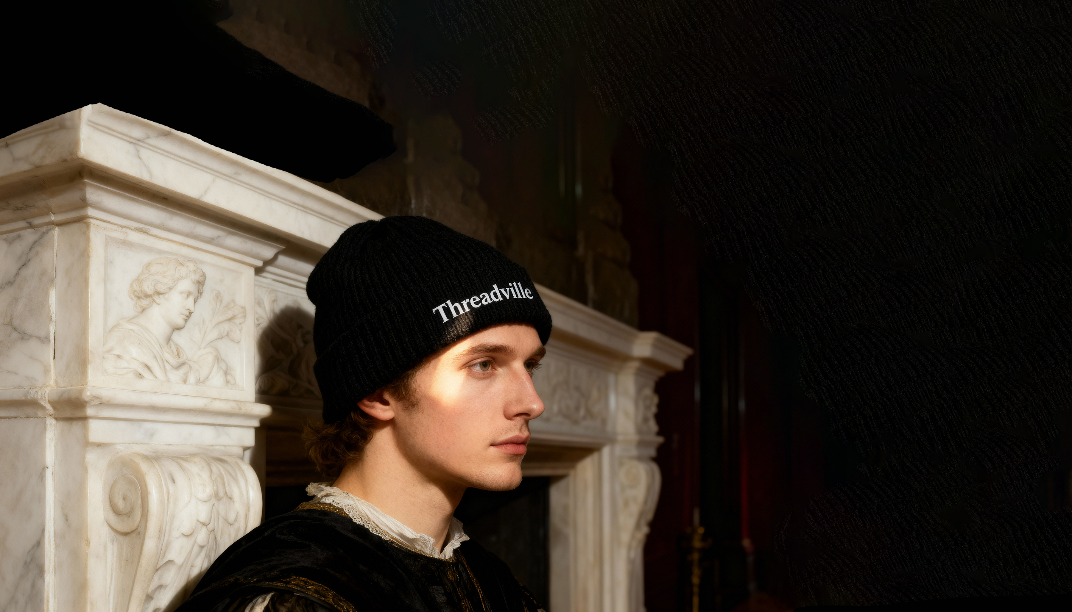 Threadville Embroidered Unisex Cuffed Black Beanie — Classic Warm Knit Hat -